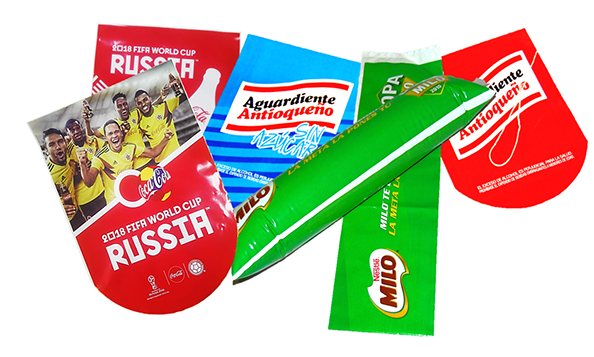 Bolsas comerciales con manijas especiales, Banderines y Faldones publicitarios, cenefas y cintas publicitarias, golpeadores inflables, inflables para eventos.